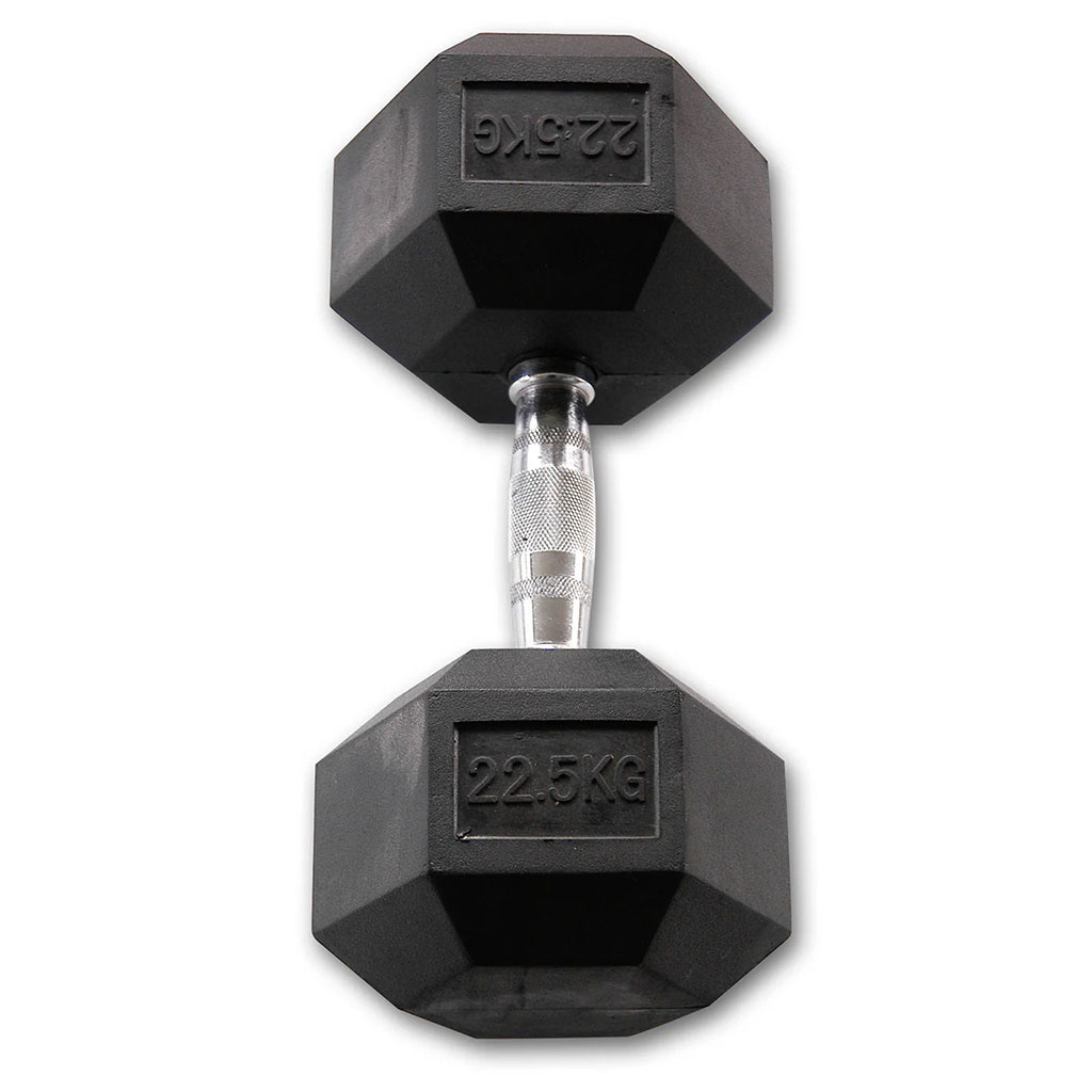 Pár 22,5 kg pogumovaných šesťhranných činiek. Vyznačujú sa odolnosťou, ktorá sa jednoducho nevyrovná. Odoláva praskaniu a vyblednutiu a zároveň chráni podlahy a zariadenia.