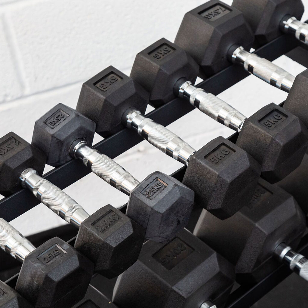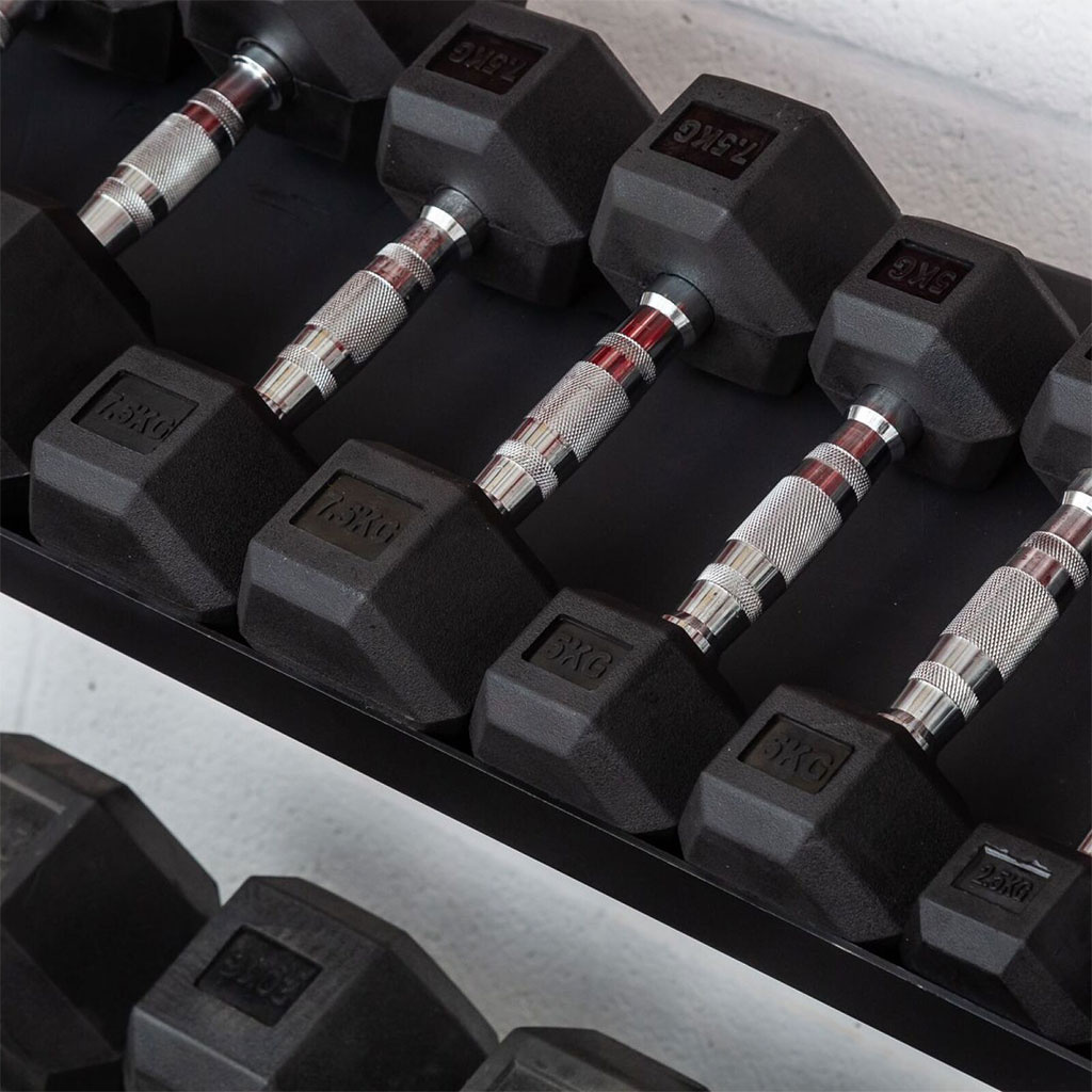 Pár 27,5 kg pogumovaných šesťhranných činiek. Vyznačujú sa odolnosťou, ktorá sa jednoducho nevyrovná. Odoláva praskaniu a vyblednutiu a zároveň chráni podlahy a zariadenia.