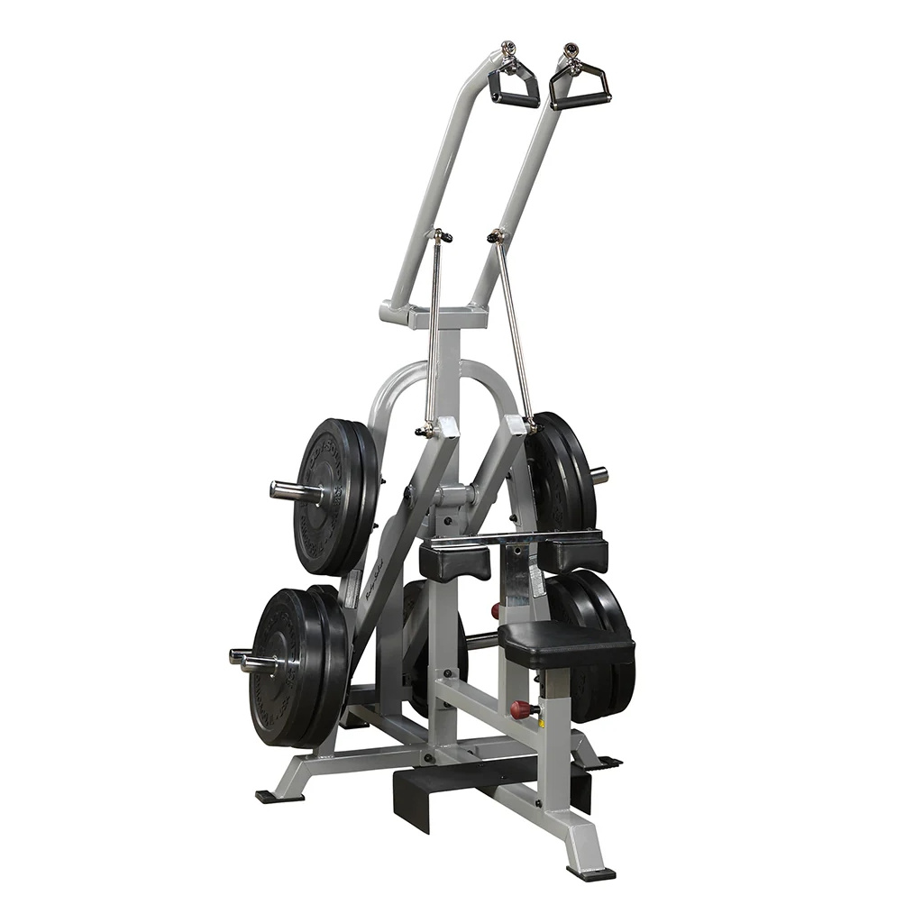 LVLA Leverage Lat Pulldown je konštruovaný s ohľadom na komerčné zariadenia a je vybavený dvojitou osou divergentného pohybu ramien pre biomechanicky správne ťahanie latissimus dorsi a 360-stupňovými kĺbovými rukoväťami pre voľný plávajúci pohyb smerom nadol a pokročilú biomechaniku.