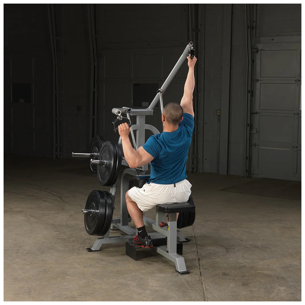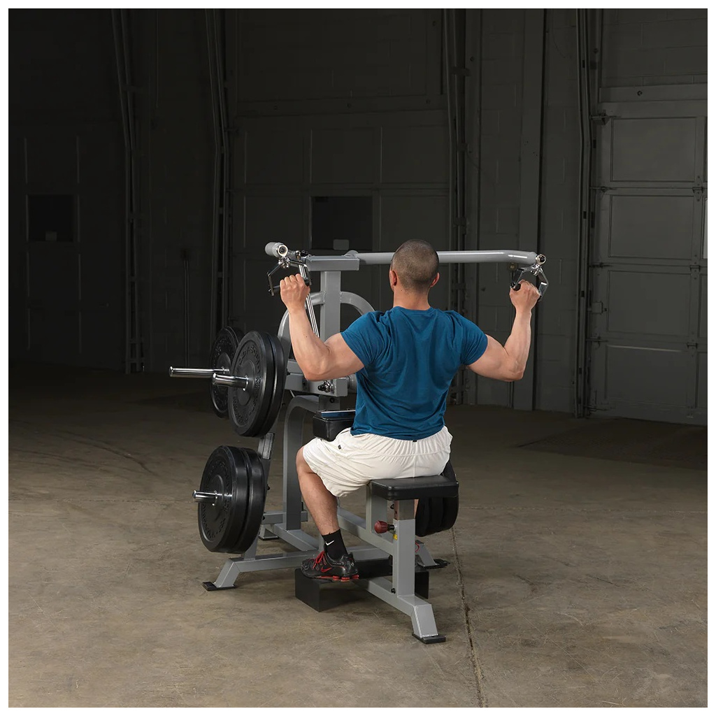 Body Solid Pro Clubline Leverage Lat Pulldown LVLA Príťahy na chrbát v sede zhora