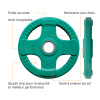 Olympijské kotúče Body-Solid Rubber Grip sú navrhnuté s použitím najmodernejšej technológie a prekonávajú všetky ostatné gumové kotúče v kvalite, presnosti, spoľahlivosti a cene. Konštrukcia so štyrmi úchopmi zaručuje bezpečnejšiu a jednoduchšiu manipuláciu.
