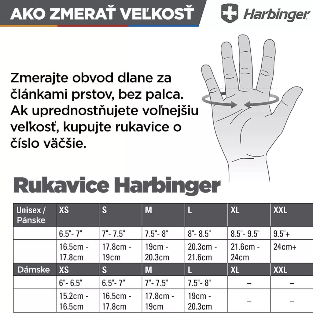 Zmeraj si obvod dlane tesne pod hánkami, bez započítania palca. Rukavice Harbinger sú navrhnuté tak, aby pevne sedeli – ide o priliehavý strih, ktorý zabezpečí maximálnu oporu pri tréningu.