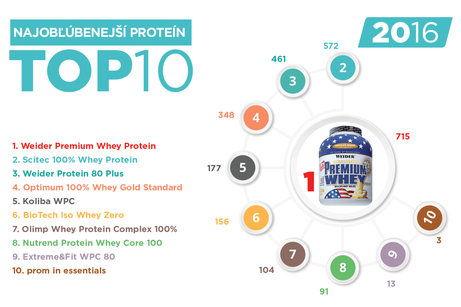 Na základe hlasovania širokej verejnosti, zostavila spoločnosť FIT PLUS s.r.o. rebríček najoblúbenejších doplnkov výživy roku 2016. Do ankety sa zapojilo spolu 2632 hlasujúcich, ktorí rozhodli o poradí suplementov v jednotlivých kategóriách.