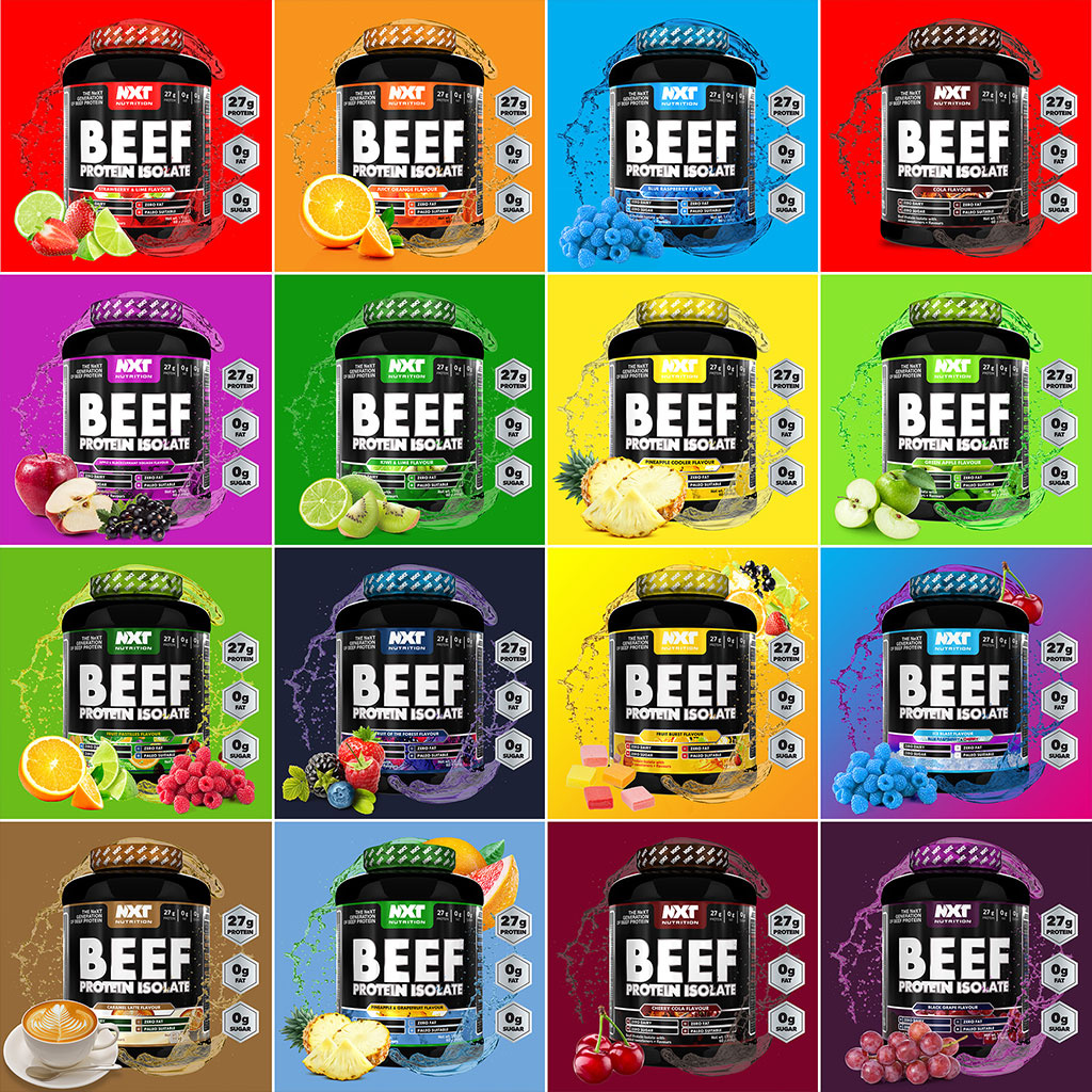 NXT Nutrition ponúka Beef Protein Isolate v širokej škále sviežich príchutí, ktoré nie sú ťažké na trávenie a výborne sa hodia na každodenné dopĺňanie bielkovín bez kompromisov.