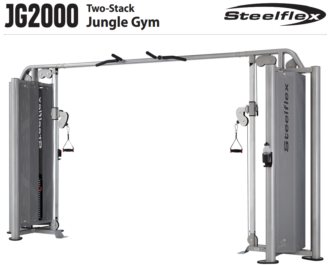 Steelflex Jungle Gym JG2000 je perfektný stroj na vykonávanie všetkých vašich obľúbených cvikov na čo najmenšom priestore. JG2000 je ideálny na dokonalé cvičenie s protismernými kladkami a príťahmi na hrazde.