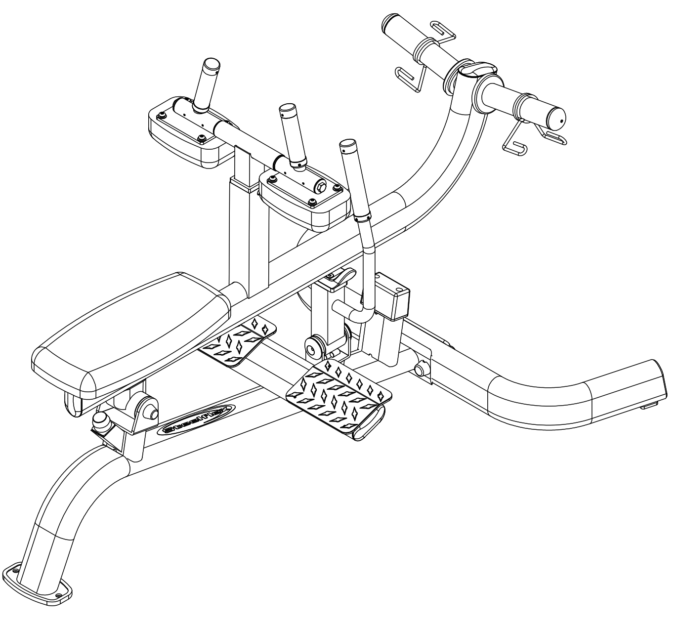 Robustná, stabilná konštrukcia je pokrytá elektrostatickou práškovou farbou, ktorá ju chráni pred poškriabaním. Sedadlo a opierky nôh sú silne polstrované pre maximálny komfort, zatiaľ čo protiskluzové nohy zaisťujú stabilitu počas cvičenia. Poloha opierok nôh je nastaviteľná, vďaka čomu je stroj vhodný pre používateľov všetkých výšok.