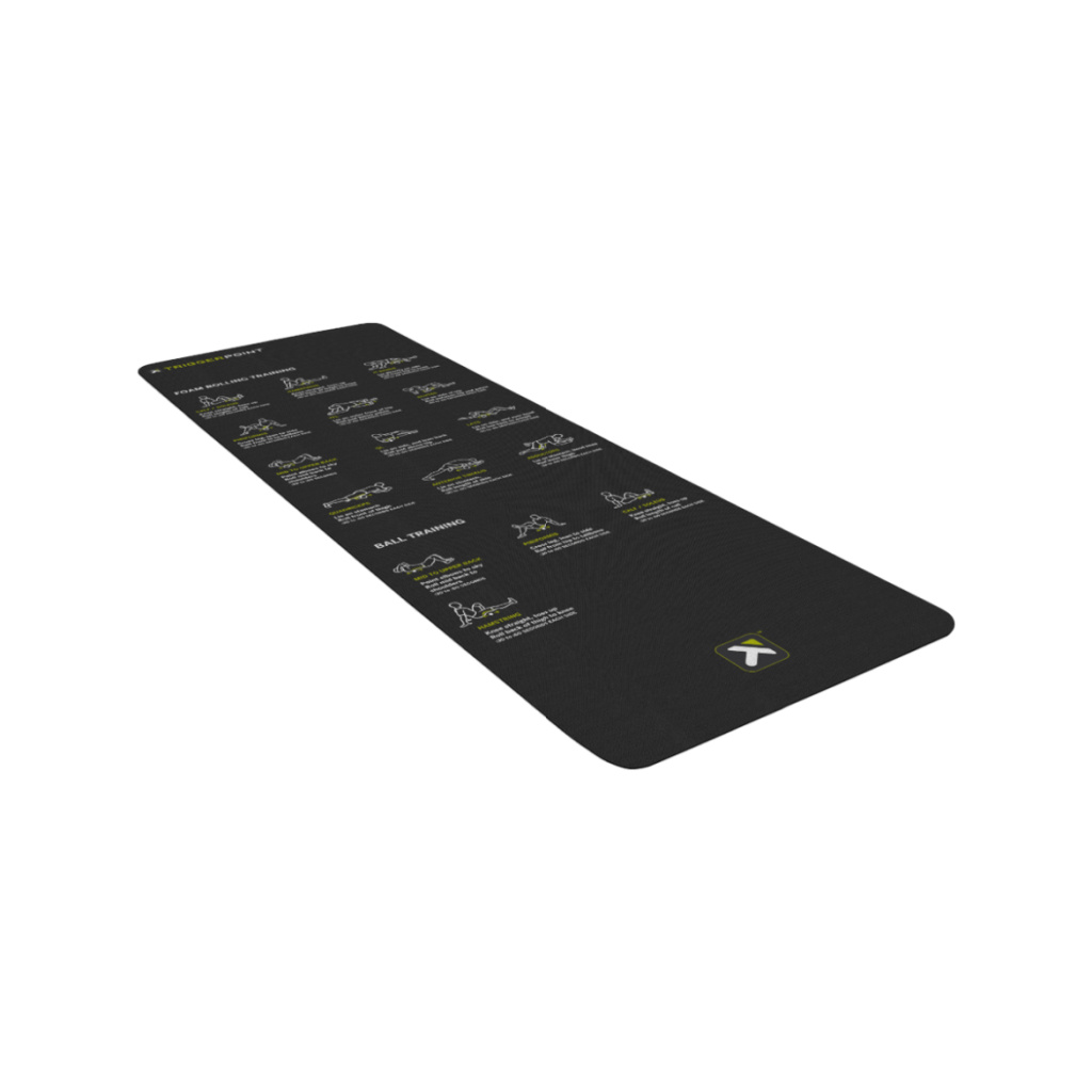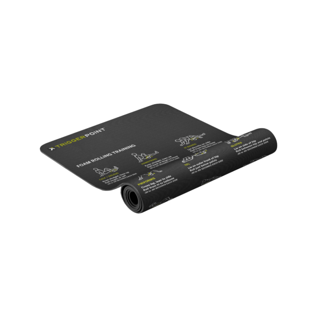 TriggerPoint Mobility Mat je špeciálne navrhnutá podložka, ktorá obsahuje 16 odporúčaných cvikov na penovom valci a masážnych loptičkách. Pomáha zlepšiť pohyblivosť tela, uvoľniť svalové napätie a podporuje správne pohybové vzorce.